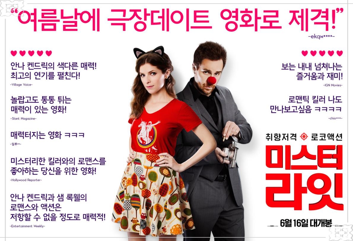 영화 "미스터 라잇(Mr. Right)"은 2015년에 개봉한 독특한 장르 결합 작품으로, 로맨스, 코미디, 액션이 절묘하게 섞여 있습니다. 감독 파코 카베사스(Paco Cabezas) 특유의 경쾌한 연출과 주연 배우들의 개성 강한 연기가 만나, 단순한 ‘킬러 로맨스’ 이상의 매력을 만들어냈습니다.